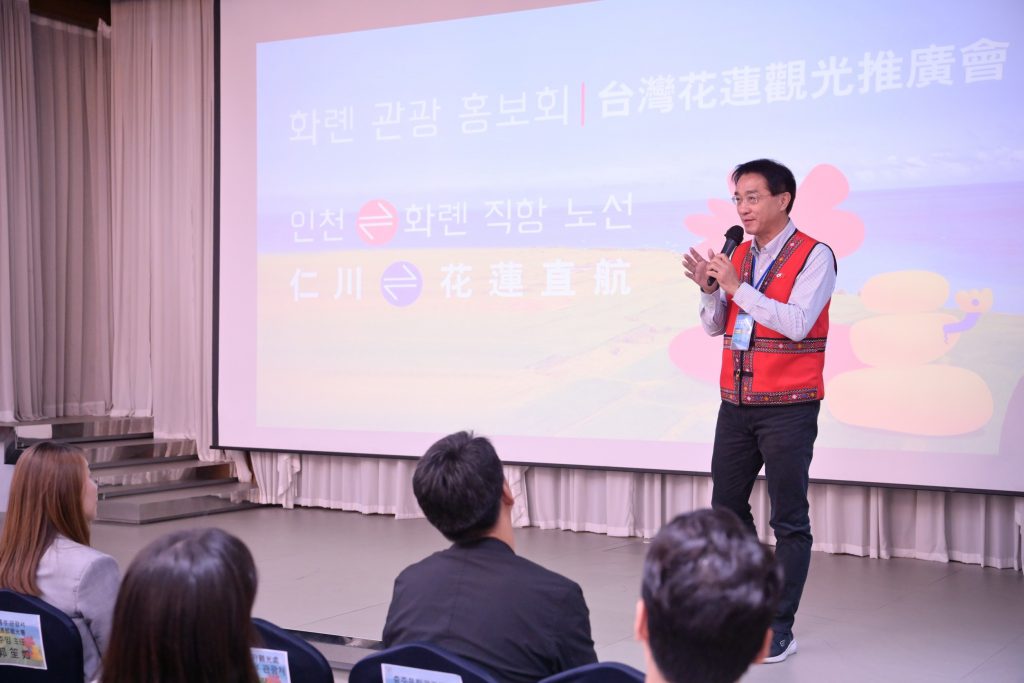 縣長徐榛蔚與縣政府團隊,成功爭取「花蓮-仁川」定期航線,今(22)日與12家觀光旅遊業者在韓國首爾舉辦「台灣花蓮觀光推廣會」宣布新航線開通。推廣會現場設B2B媒合平台,讓業者與韓國旅行同業面對面洽談。外交部駐韓代表大使丘高偉、以及眾多韓國政界人士、觀光業者與媒體出席踴躍,共同見證花蓮國際觀光重要里程碑。
