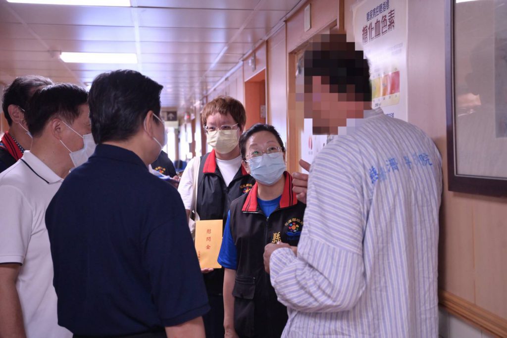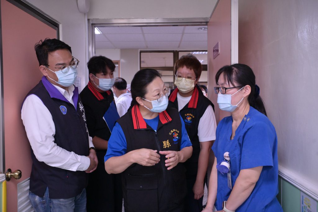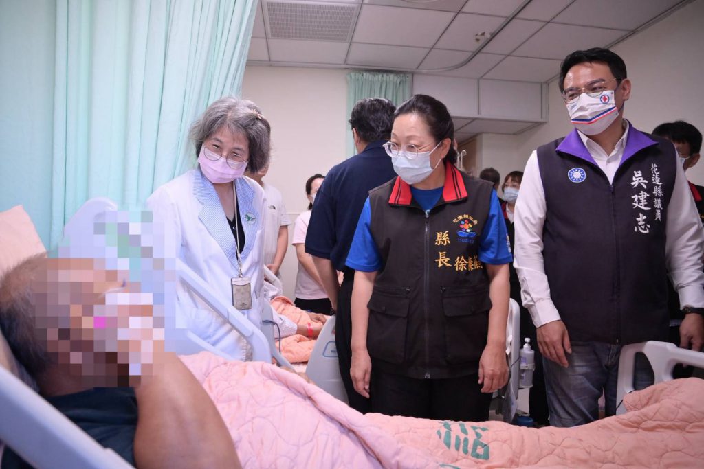 花蓮縣長徐榛蔚今(4)日前往花蓮慈濟醫院、門諾醫院、臺北榮民總醫院鳳林分院、玉里慈濟醫院及臺北榮民總醫院玉里分院,探視25位因馬太鞍溪堰塞湖潰壩受傷害而住院的鄉親,關心其病況與復原情形,並代表縣府致上誠摯慰問。