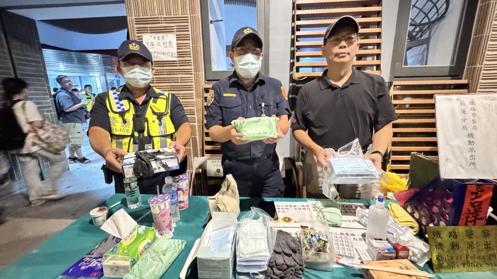 包括鐵路警察局花蓮分局副分局長羅中志、業務股巡官劉信裕、花蓮副所長溫紹明以及玉里所警員葉爵嘉等人,特別在光復火車站前設立服務據點,不僅提供安全諮詢、交通指引與緊急協助外,也成為各地志工的重要聯絡站。