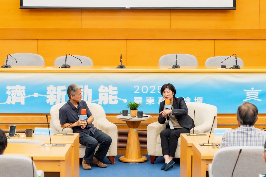 「2025臺東產業論壇」首先由易遊網董事長陳甫彥進行專題演講,從旅遊與科技產業跨域的豐富經驗切入,分享臺東如何在慢經濟中,透過青年返鄉、數位工具導入與永續實踐,激發下個世代的新發展動能。隨後饒慶鈴與陳甫彥深度對談,從地方治理到產業實務進行交流,並且獲得現場熱烈迴響。