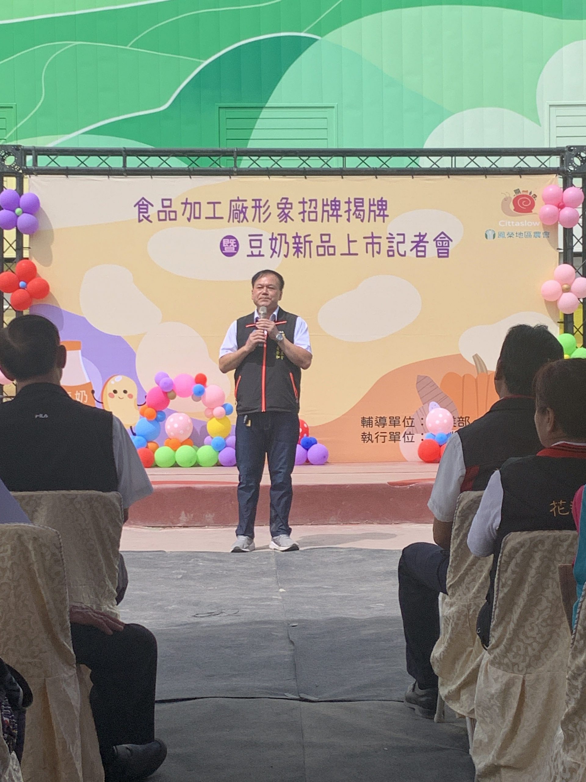 鳳榮地區農會今(14)日舉行「食品加工廠形象招牌揭牌暨豆奶新品上市」記者會,呈現地方農產加工產業的創新成果與永續發展能量。鳳榮地區農會在揭牌及新品上市儀式中也推出兩款創新豆奶新品,為花蓮在地大豆產業鏈注入新動能。