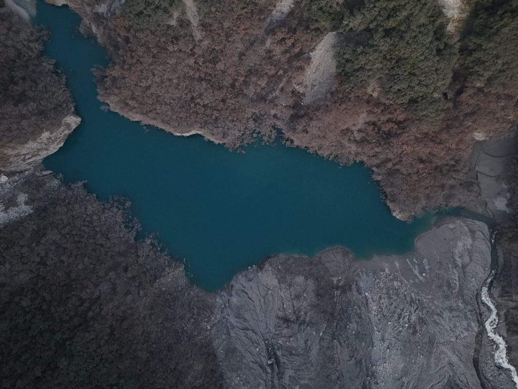 二、堰塞湖潰決後,天然壩體積約1.1億立方公尺,目前溢流口下游坡度平緩(6度),無潰決跡象;溢流口左岸尚有約1億立方公尺的土砂堆積在坡面,9/25~10/17僅崩崖陡坡局部崩塌,無明顯整體邊坡滑動跡象。