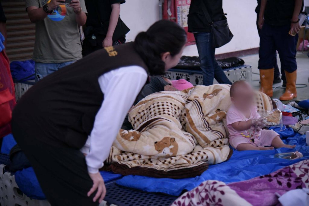 花蓮縣太魯閣國家公園燕子口出現堰塞湖,水位急速上升,已發布紅色警戒。縣長徐榛蔚今(19)日在縣府原民處長馬呈豪、民政處副處長吳俊毅、秀林鄉長王玫瑰陪同下,前往秀林國中活動中心探視與關心收容鄉親。