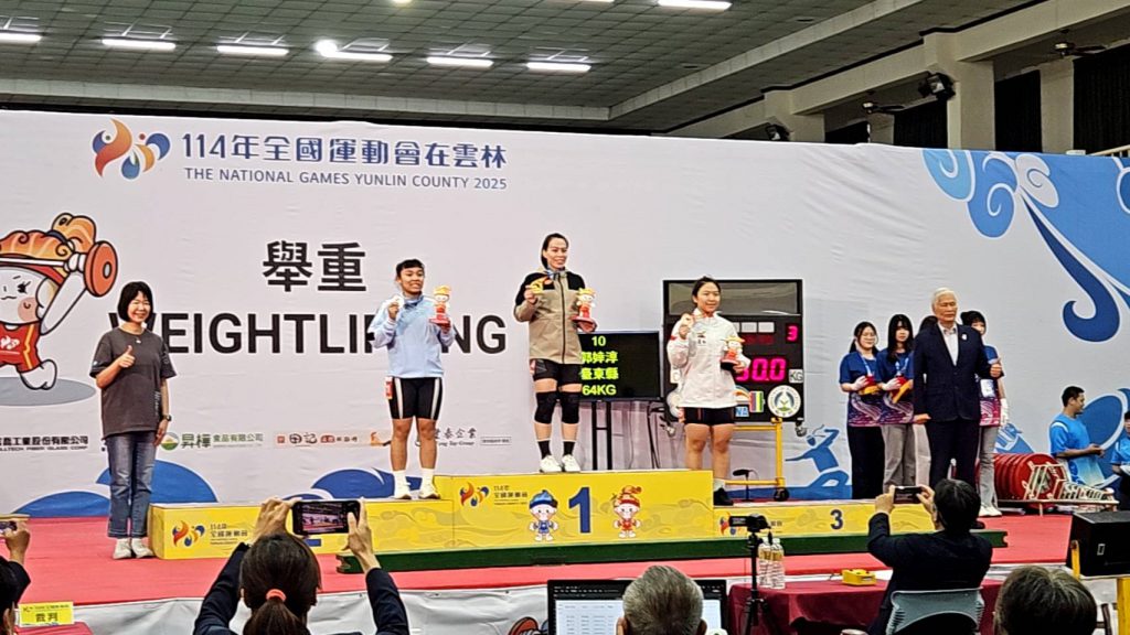 在雲林縣舉行的1124年全國運動會,今(20)日縣府教育處長蔡美瑤觀賽下,「舉重女神」郭婞淳在舉重女子64公斤量級,以抓舉98公斤、挺舉130公斤、總和228公斤,為臺東縣舉起一面金牌,並一舉打破挺舉項目跟總合的大會紀錄。男子舉重黃品勳,也在隨後的男子81公斤級,以總合310公斤,再為臺東縣摘下一面金牌,累計至今天已獲3金1銀5銅。