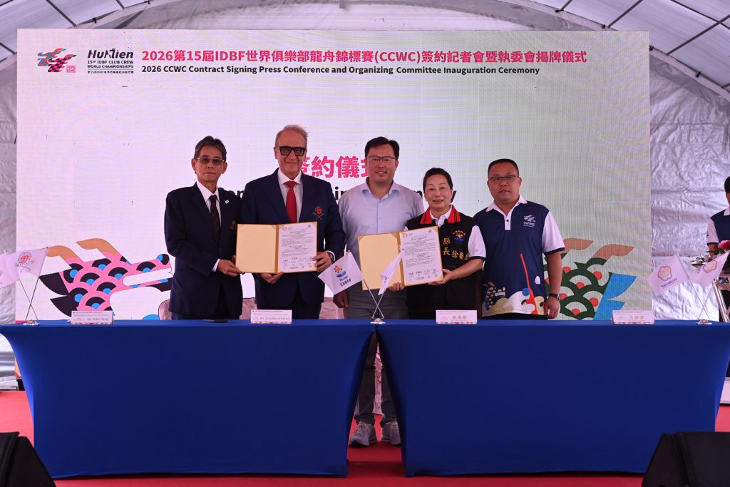 花蓮縣政府今(23)日假花蓮縣運動休閒園區舉辦「2026世界俱樂部龍舟錦標賽簽約暨執行委員會揭牌儀式」。2026年第15屆世界俱樂部龍舟錦標賽(IDBF Club Crew World Championships, CCWC),由中華民國龍舟協會與國際龍舟聯合會(IDBF)聯合簽署本屆賽事邀請函,花蓮縣長徐榛蔚宣示,花蓮將全力以赴,為花蓮爭光,為臺灣爭光。