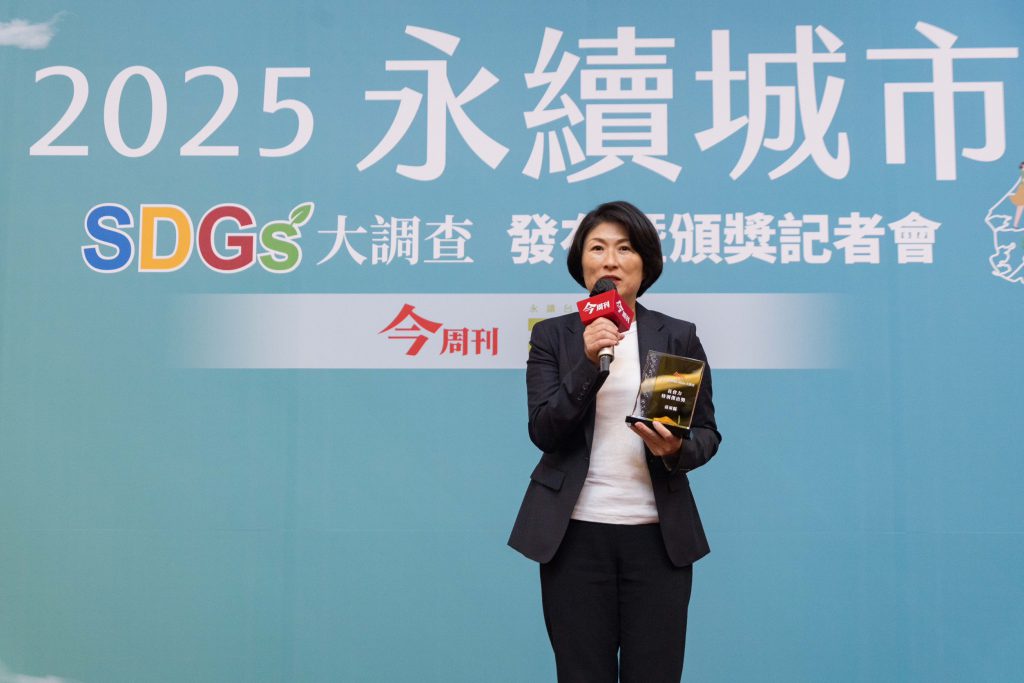 由《今周刊》主辦「2025永續城市SDGs大調查發布記者會」,22日下午於台大國際會議中心舉行。臺東縣榮獲「最佳首長信任獎」、「社會力特別傑出獎」及「永續城市優等獎」三項殊榮,縣長饒慶鈴出席頒獎典禮,領取這份榮耀。