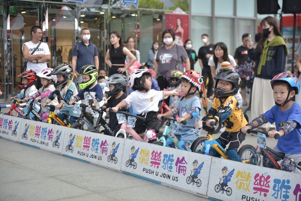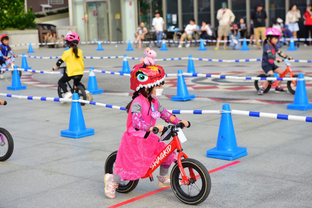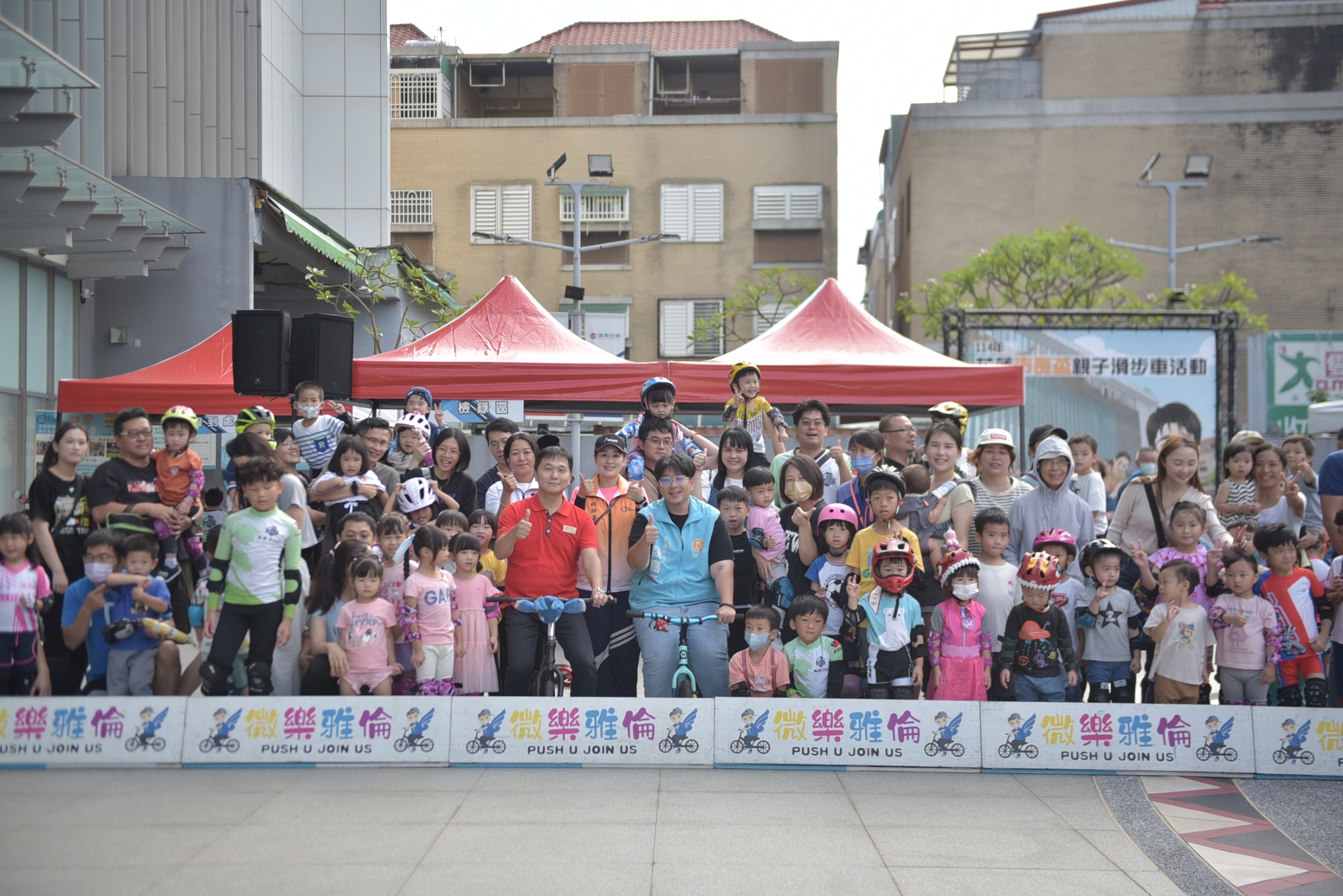 本次比賽統一使用12吋滑步車,依年齡分為2歲、3歲、4歲、5歲及6歲等組別,讓孩子們在安全規劃的賽道上展現自信與速度感。賽場邊家長們加油聲不斷,氣氛熱烈;而在親子闖關區,大小朋友攜手合作完成趣味挑戰,笑聲此起彼落,充分展現家庭間的互動與團結。