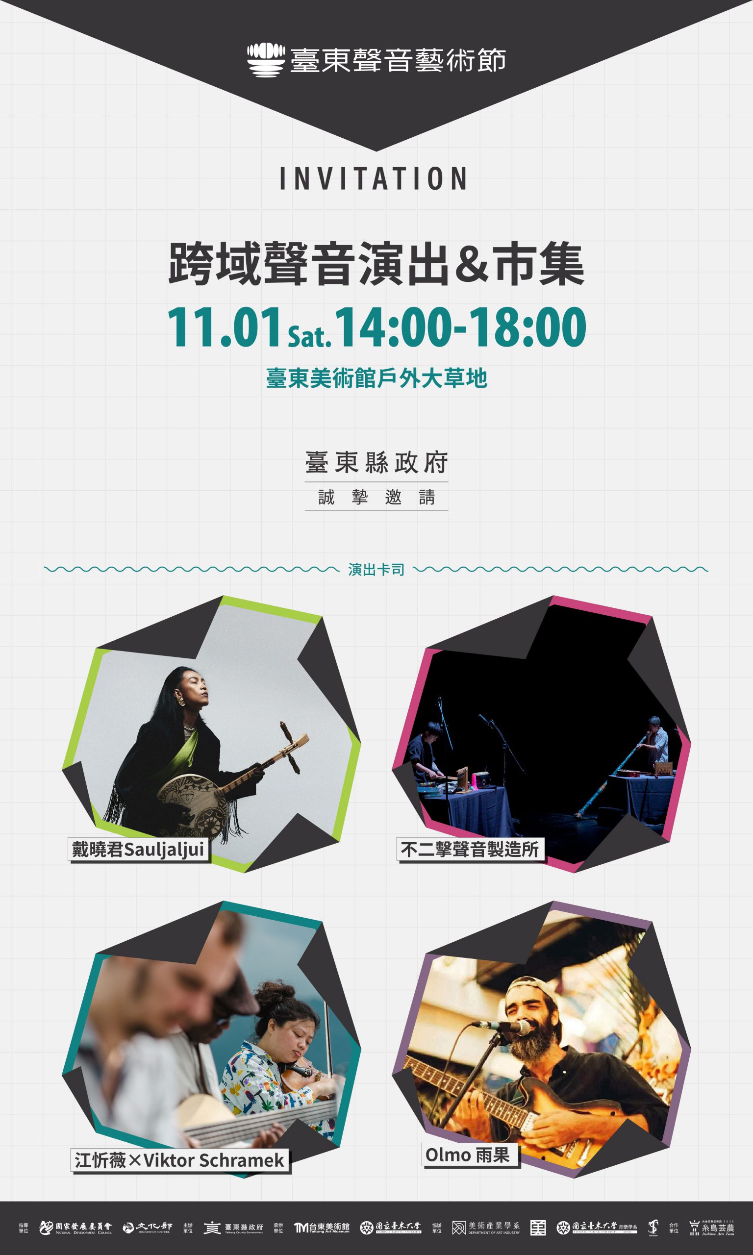 縣府文化處指出,今年跨域演出以打擊樂為核心,邀請由擊樂、聲音工作者薛詠之創立的「不二擊聲音製造所」帶來精彩的演出,以及長年探索實驗音樂的 Olmo 雨果,用即興創作帶來生活中的光影和聲響。還有江忻薇的小提琴與Viktor Schramek的爵士鼓共創的即興交錯,以及今年金曲獎得主戴曉君Sauljaljui與臺東大學音樂系管弦樂團合作,讓古典與流行在聲音藝術節的序幕中交織共鳴。