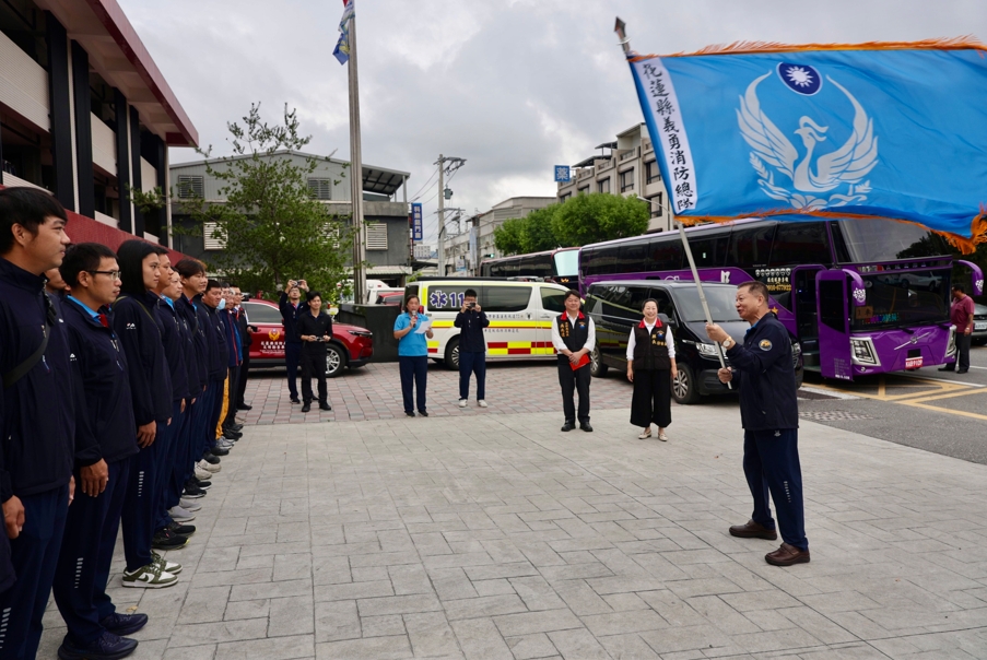 「114年全國義勇消防人員體技能交流活動」於10月31日至11月2日在苗栗縣立體育場盛大登場,花蓮縣義消總隊選手與工作人員共計78人參加。今(31)日出發前,縣長徐榛蔚在消防局長吳兆遠及吉安鄉長游淑貞的陪同下,出席花蓮縣消防局特搜大隊吉安分隊替參賽義消同仁授旗,慰勉辛苦的人員,並預祝本次交流活動圓滿順利。