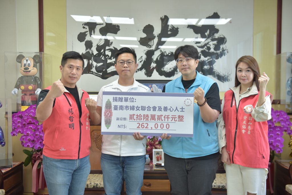 臺南市議員林美燕秉持「同島一命、共度難關」的精神,近日號召臺南婦女聯合會及多位在地善心人士,共同籌措愛心捐款新臺幣26萬2千元,盼能協助光復鄉洪災罹難家屬度過難關。30日上午,由林議員之子、服務團隊代表葉翰勳,偕同圓山慈善發展協會理事長楊哲明,專程前往花蓮市公所,將這份愛心善款轉交予魏嘉彥市長,請市公所協助轉贈予災民家屬。