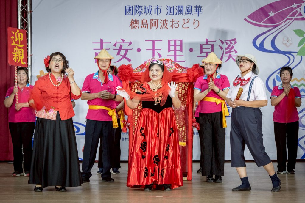 表演活動中,阿波舞團的表演充滿祭典氛圍,舞者隨著三味線與太鼓的節奏高喊:「Ah, yattosa!」、「Ah, yatto-yatto!」,象徵「好久不見,你們好嗎?」的問候,傳遞跨國友誼的溫暖。同時,舞者也走入觀眾席帶領全場共舞,許多鄉親也熱情回應「yattosa!yattosa!」,隨著音樂手舞足蹈,現場洋溢彼此鼓舞的熱情能量,畫面溫馨動人。
