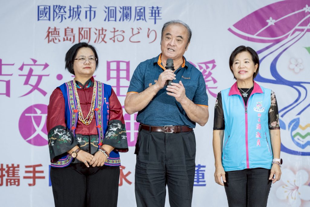 吉安鄉鄉長游淑貞表示,這場國際舞蹈嘉年華感謝縣政府與縣議會大力推廣支持,在吉安鄉公所策辦下,結合玉里鎮公所、卓溪鄉公所共同辦理。在串聯南北三鄉鎮與跨海而來的日本南大阪阿波舞團隊,為花蓮鄉親帶來結合國際性與在地性的多元文化舞蹈交流,在交流中形塑跨鄉鎮藝文的重要活動。游淑貞感謝南大阪連連長安東圭介率領阿波舞團隊遠道而來,帶來充滿日本傳統民俗與觀光價值的精湛演出,為花蓮觀光產業挹注新能量,也深化台日友好交流情誼。