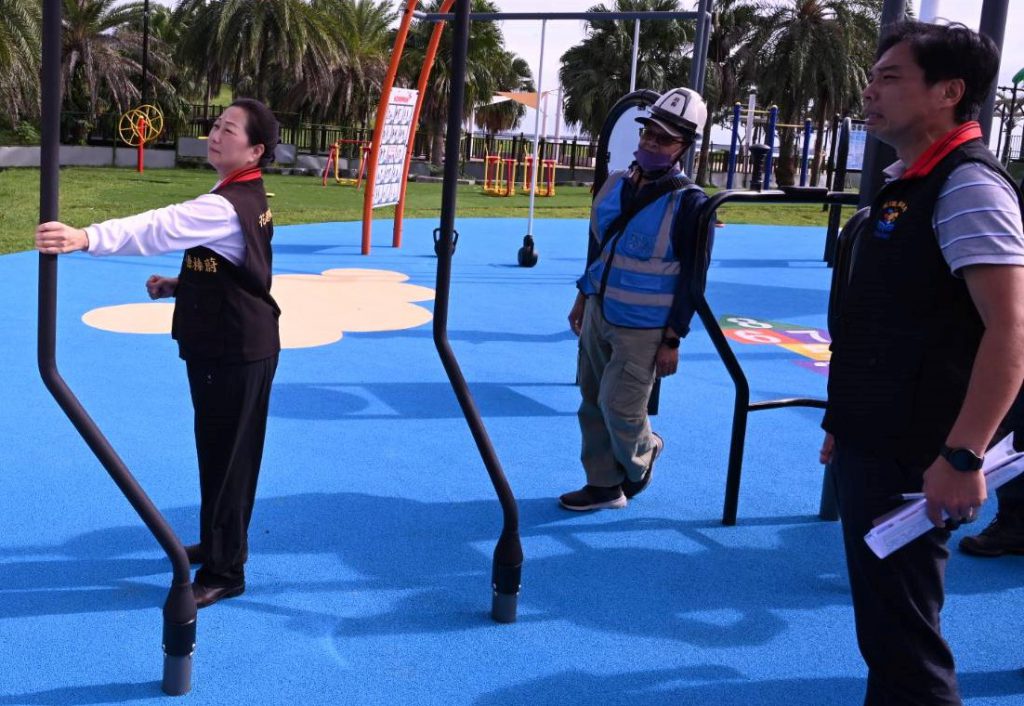 縣長徐榛蔚於現場聽取簡報後,逐一檢視各項工程內容,其中「太平洋公園新建成人體健設施設備、周邊步道整修曁陽光電城周邊設施坡道改善工程」內容包括增設各式成人體健設施、改善木棧道、地坪鋪面及設施坡道等。