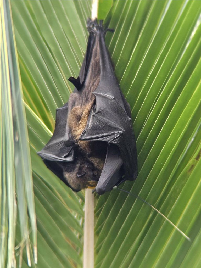 研究期間亦觀察到雌蝠「嘉嘉」與雄蝠「麻吉」共棲於同一棵可可椰子樹上,罕見的互動畫面顯示,狐蝠具有豐富的社會行為。研究成果不僅揭開這種大型蝙蝠在都市中生存的秘密,也證明花蓮市的綠地配置具備支持野生動物族群穩定發展的潛力。