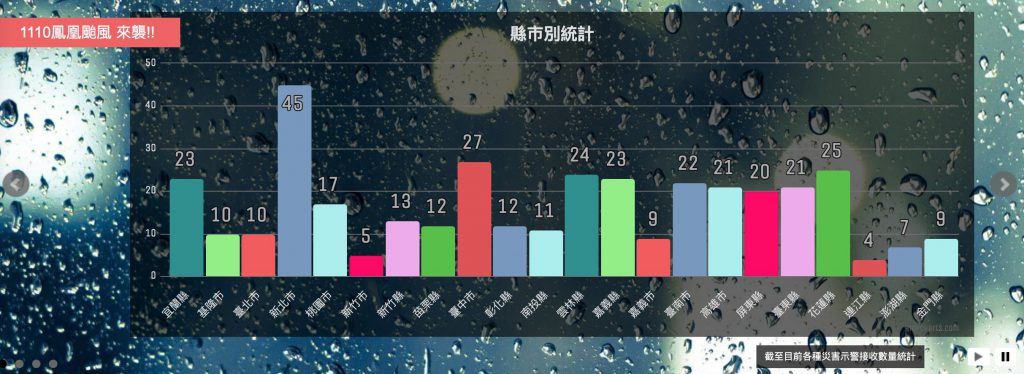 網站整合氣象署、交通部、內政部消防署等單位,除了颱風動態,也能查到各縣市警戒、停班停課公告、即時雨量及淹水警示圖。(翻攝自災害應變資訊網)