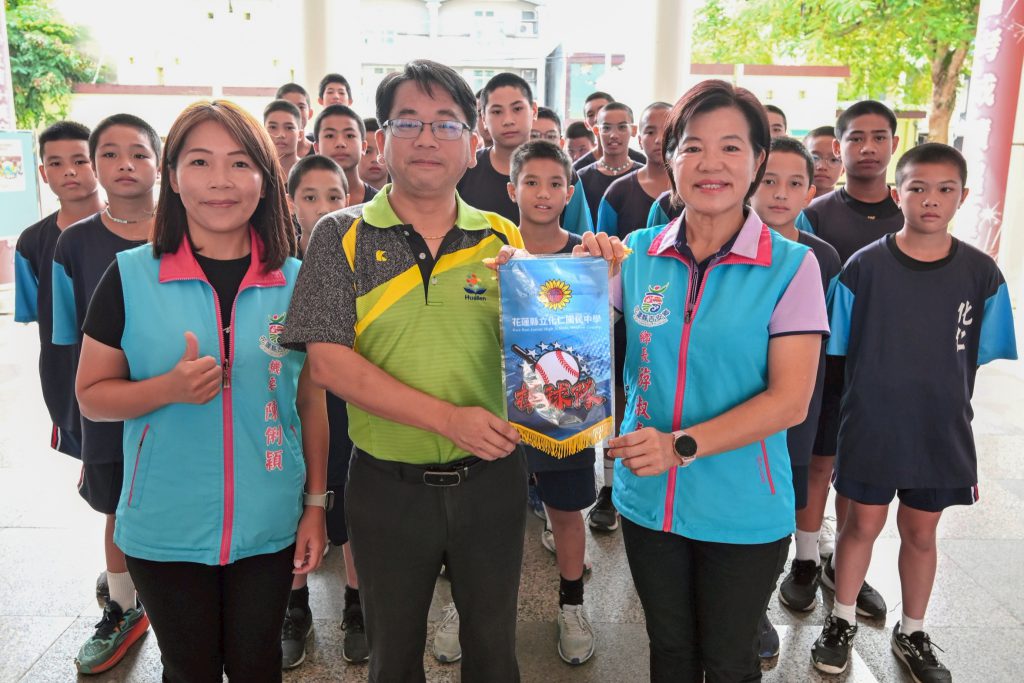 吉安鄉長游淑貞、家長會長陳俐穎日前前往化仁國中,為獲得「114學年度軟式棒球聯賽花蓮縣選拔賽」第二名,將代表花蓮縣前進全國國中棒球「軟式組」聯賽的化仁國中棒球隊授旗。在肯定選手們長期堅持訓練的毅力與團隊精神下,也感謝教練群多年來辛勤培育地方體育人才。游淑貞勉勵全體隊員以自信與勇氣迎接挑戰,為吉安、為花蓮再添榮耀。