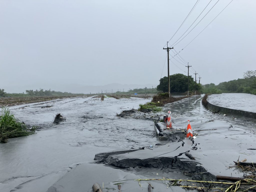 縣長徐榛蔚今(12)日會同建設處長鄧子榆,前往遭鳳凰颱風挾帶強降雨,造成萬榮鄉馬太鞍溪北岸堤防上游段破口災情。由於洪水夾帶泥沙沿道路漫淹至明利村及鳳林鎮台9線部分路段,導致水流於台9線231K處匯入長橋區域排水系統。徐榛蔚與相關人員在現勘時,即時研議應變及防護措施,防止災情進一步擴大。