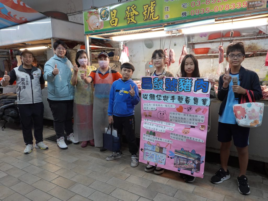 各組學生在走讀前,先做好事前準備,他們依照分配,上網查詢各自的攤商資料,包括昌發號豬肉、新登味、鄭家土雞肉、中華市場蔬果攤與富琴魚行等五個攤位;學生們在校內整理資訊,完成「攤商海報」作為研究成果,今日則直接帶至現場向攤商發表。