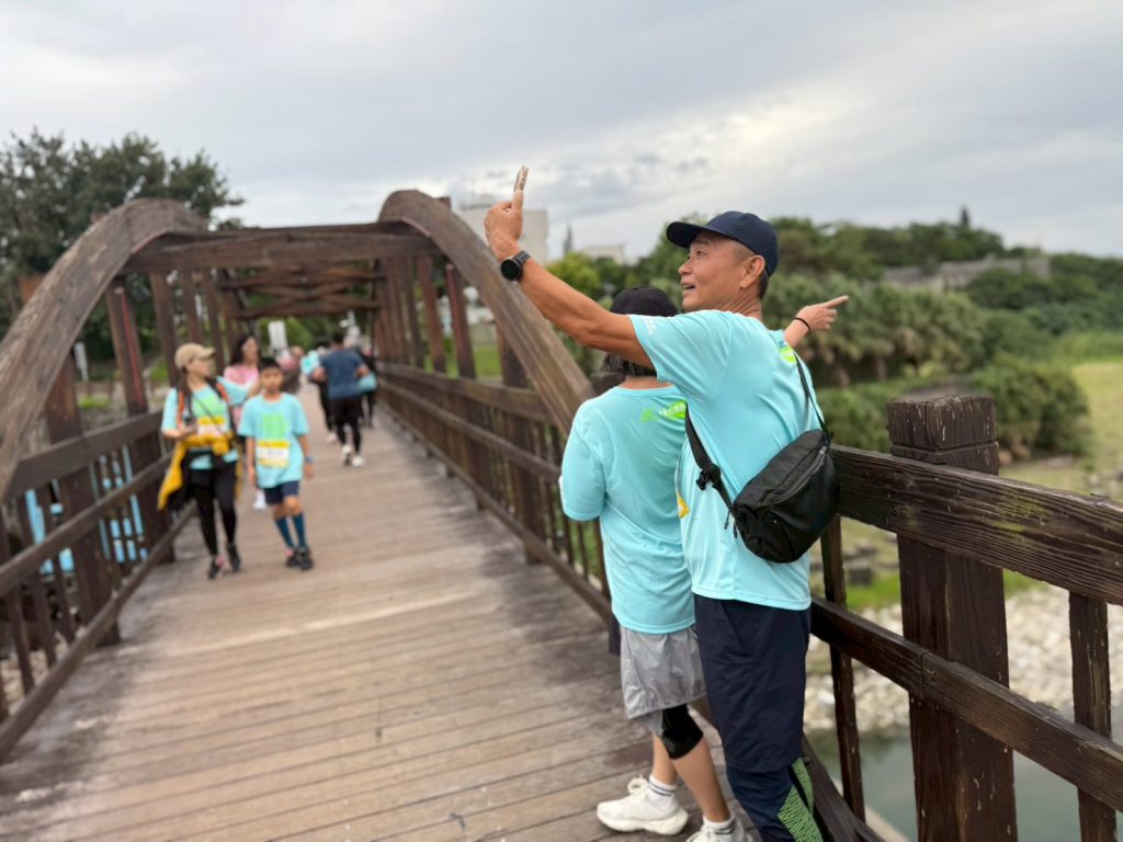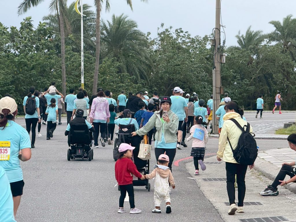 在5K迷你馬的賽程中,只見一家大小、男女老少,以參加嘉年華的心情,開心地走在賽道上。有些長者相互扶持或在家人的陪伴下,步履雖滿,卻也開心地走著。有些年輕父親拜孩子扛在肩上,大步向前、媽媽則推著推車,推車裡年幼的孩子開心地東張西望。