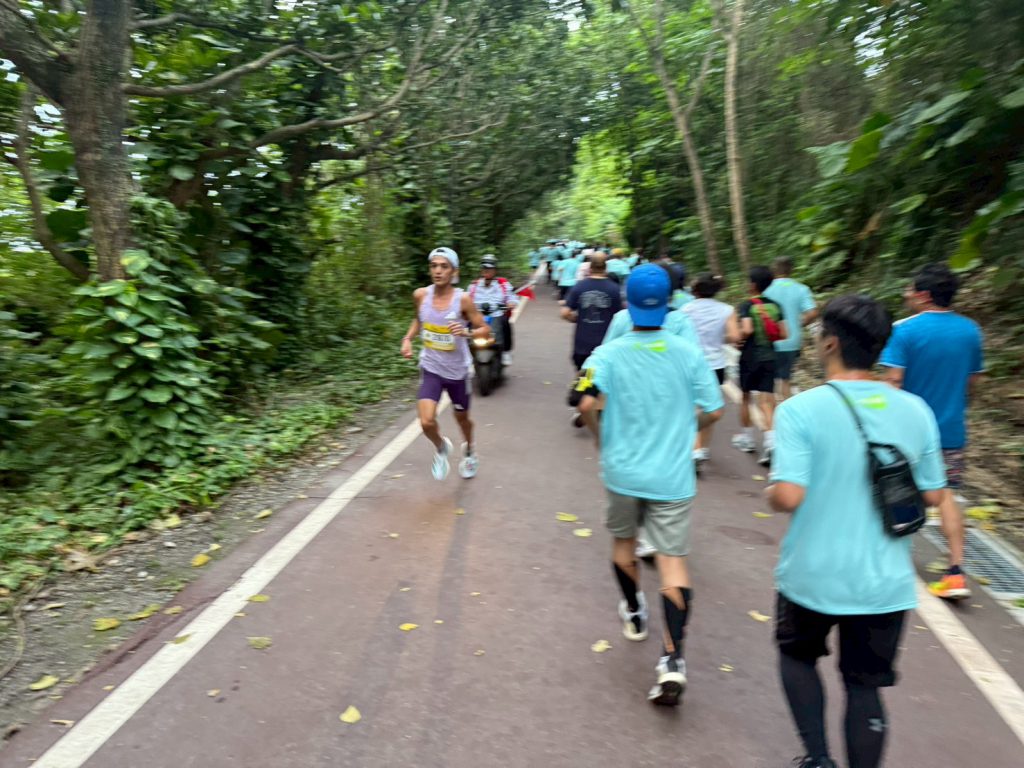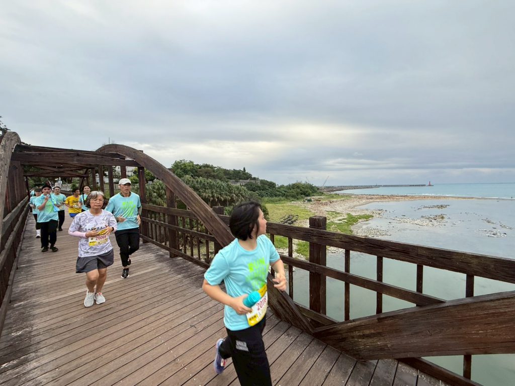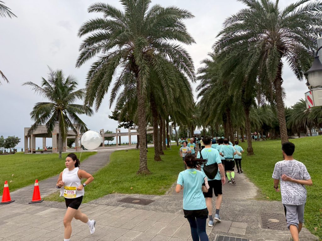 跑在外環道時,轟隆隆的潮水聲呼應著維護航道安全的紅色燈塔,眼前相應的是蔚藍太平洋與海岸安脈北段的翠綠山景,天空白雲片片,也讓跑者們驚呼,這是全臺灣最美的賽道啊。在賽道上,許多跑者在跑步過程中,也不計較時間的長段,不時停下步伐,以山海美景作為背景,留下美麗的記憶。