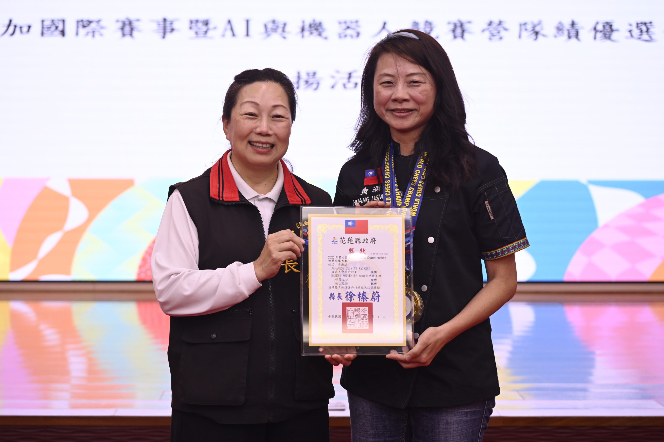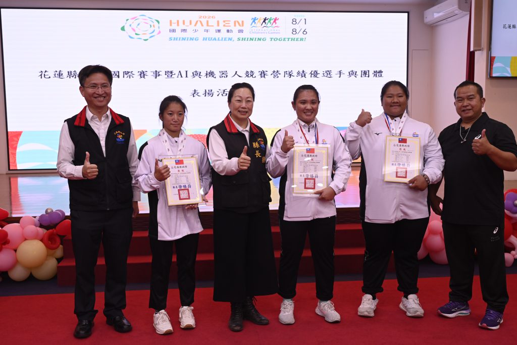 縣長徐榛蔚致詞時表示,每一個獎牌背後都是無數次練習與突破的累積,選手以實力為自己與花蓮贏得榮耀,也展現花蓮縣在體育、科技與餐飲等多元領域的軟實力。徐榛蔚感謝教練、校長與家長的長期陪伴,耐心引導選手度過撞牆期與成長挑戰,成就今日亮眼表現。徐榛蔚說,縣府以「德智體群美,五育並重」為教育核心,從小論文、發明展到智慧教育推動,並結合大專院校讓選手能在地升學,同時支持藝術家與工藝師走向國際,讓世界看見花蓮的能量。