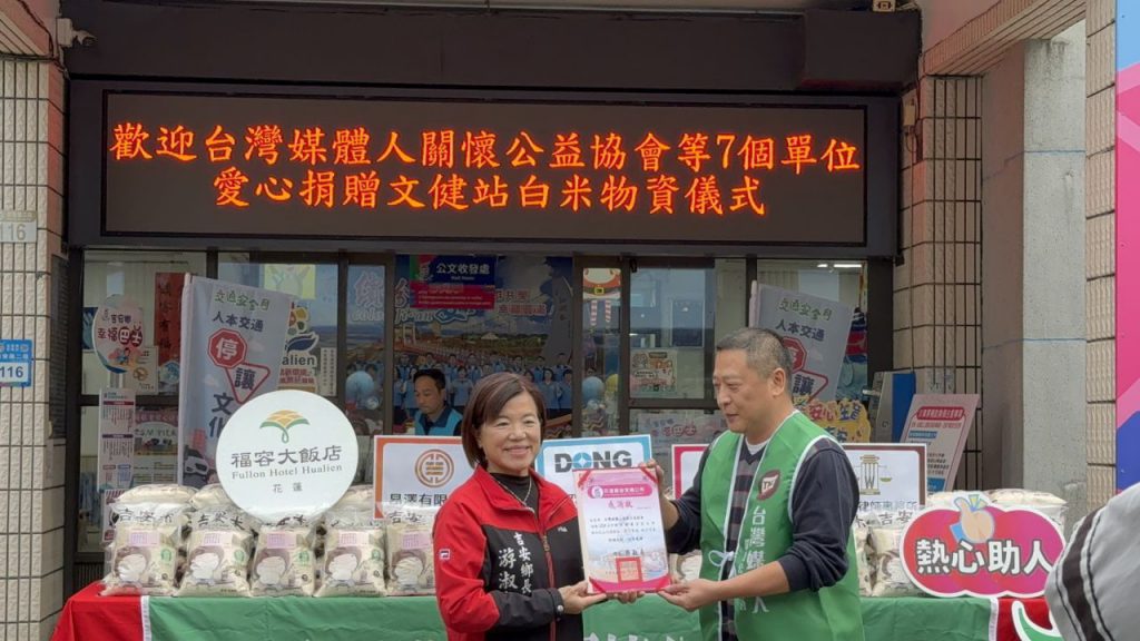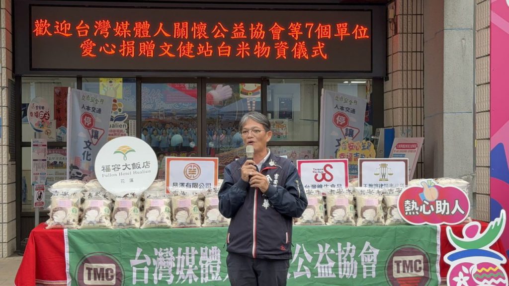 吉安鄉民代表余振華,連結8個社會企業與機構成員,組成的社會資源「台灣媒體人關懷公益協會」,於今(21)日,捐贈1,250公斤白米給鄉公所,由鄉長游淑貞代為接受,轉贈予鄉內7個原住民族文化健康站。