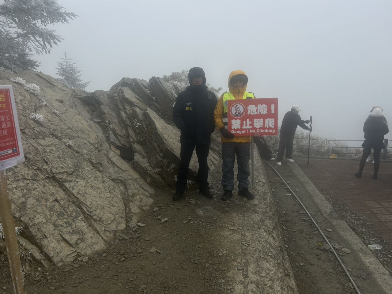 武嶺位於林保署南投分署所轄的合歡山遊樂區與太魯閣國家公園遊憩區範圍內,是合歡山區的重要旅遊據點。每逢雪季期間,更是許多民眾主要的賞雪據點,近日雖然合歡山區沒有持續下雪,但森林霧淞美景,還是吸引無數中外遊客前來賞景。因公路旁已無積雪,武嶺停車場岩壁的雪景,成為民眾拍照熱區,為了拍到美照,也要攀爬武嶺岩壁,跟岩壁上的森林積雪合照。此一行為除了危險外,還違反國家公園法第13條太魯閣國家公園公告禁止事項之相關規定,太魯閣國家公園管理處(以下簡稱太管處)與林業及自然保育署南投分署(以下簡稱南投分署)、警政署保安警察第7總隊第9大隊(以下簡稱保七第九大隊)即日起將加強宣導及取締工作,一旦發現違規情形,一律依法處罰。